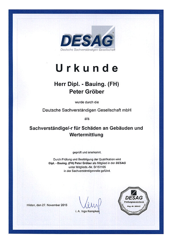 • DEKRA-zertifizierter Sachverständiger für immobilienbewertung D1