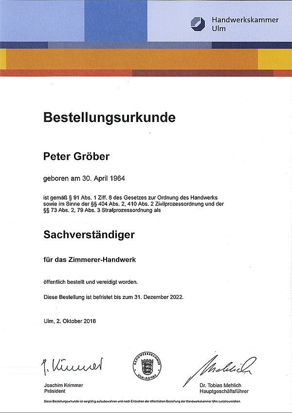 • Öffentlich bestellter und vereidigter Sachverständiger für das Zimmererhandwerk