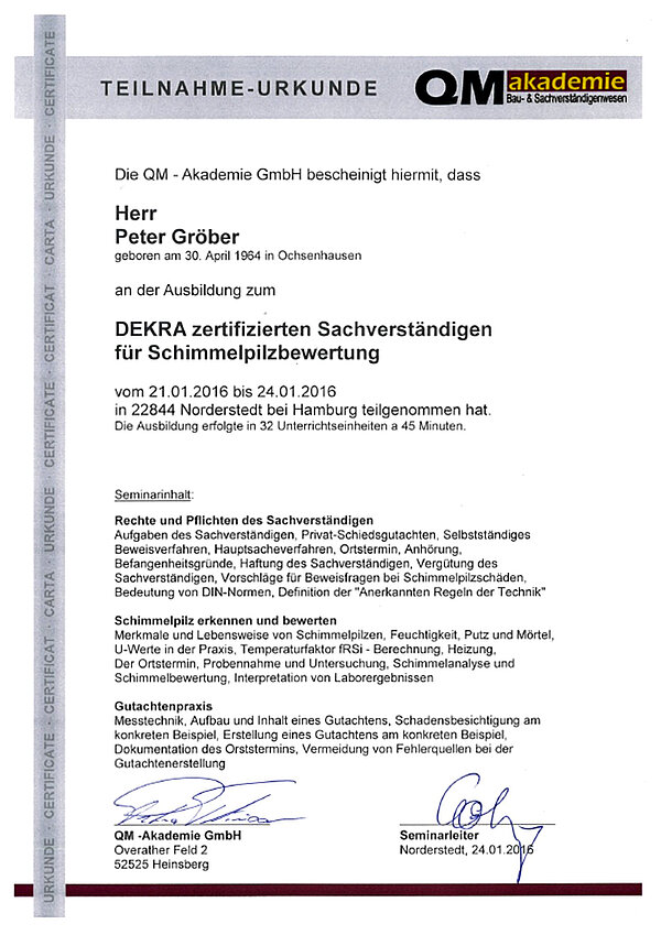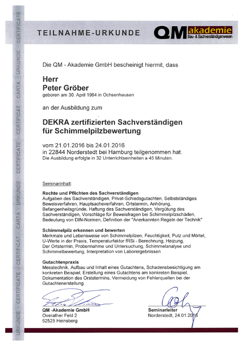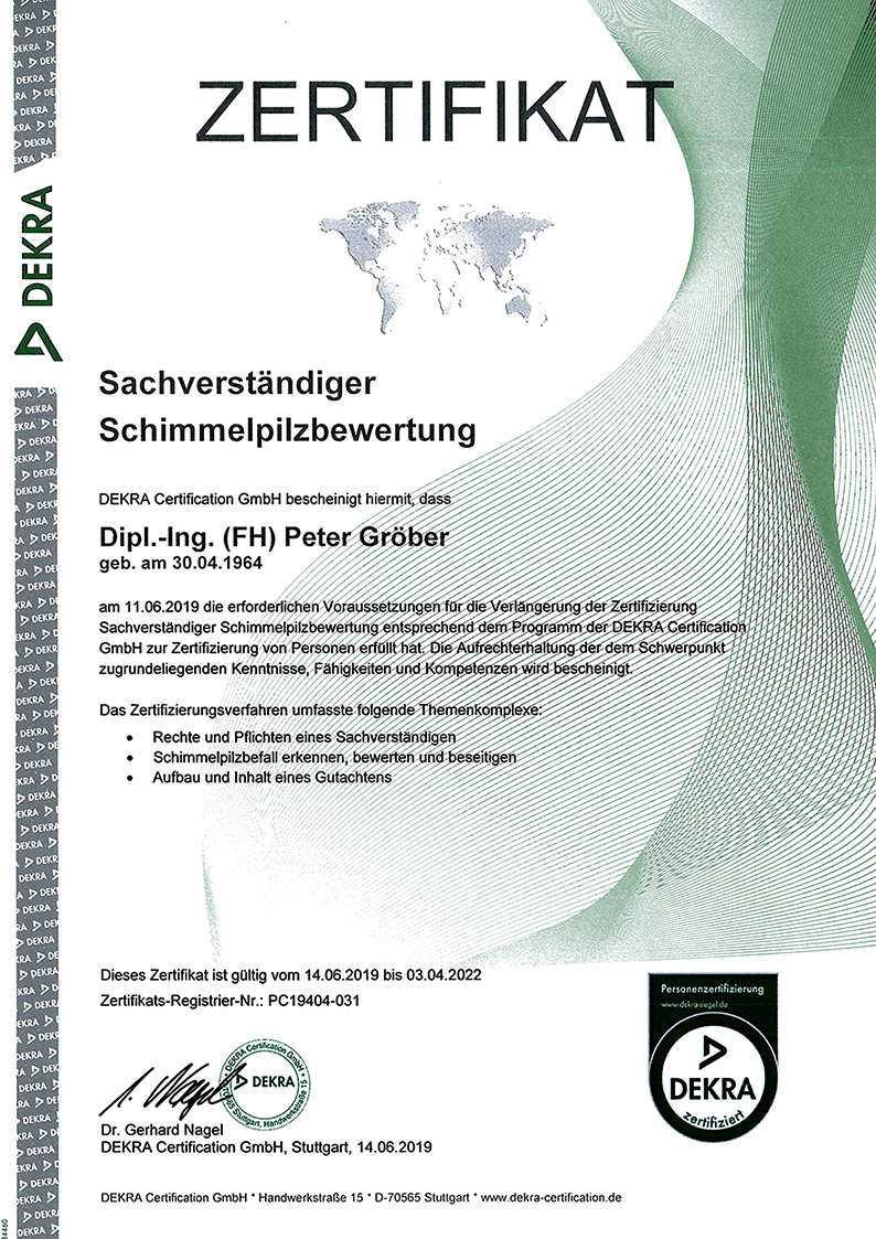 • DEKRA-zertifizierter Schimmelsachverständiger